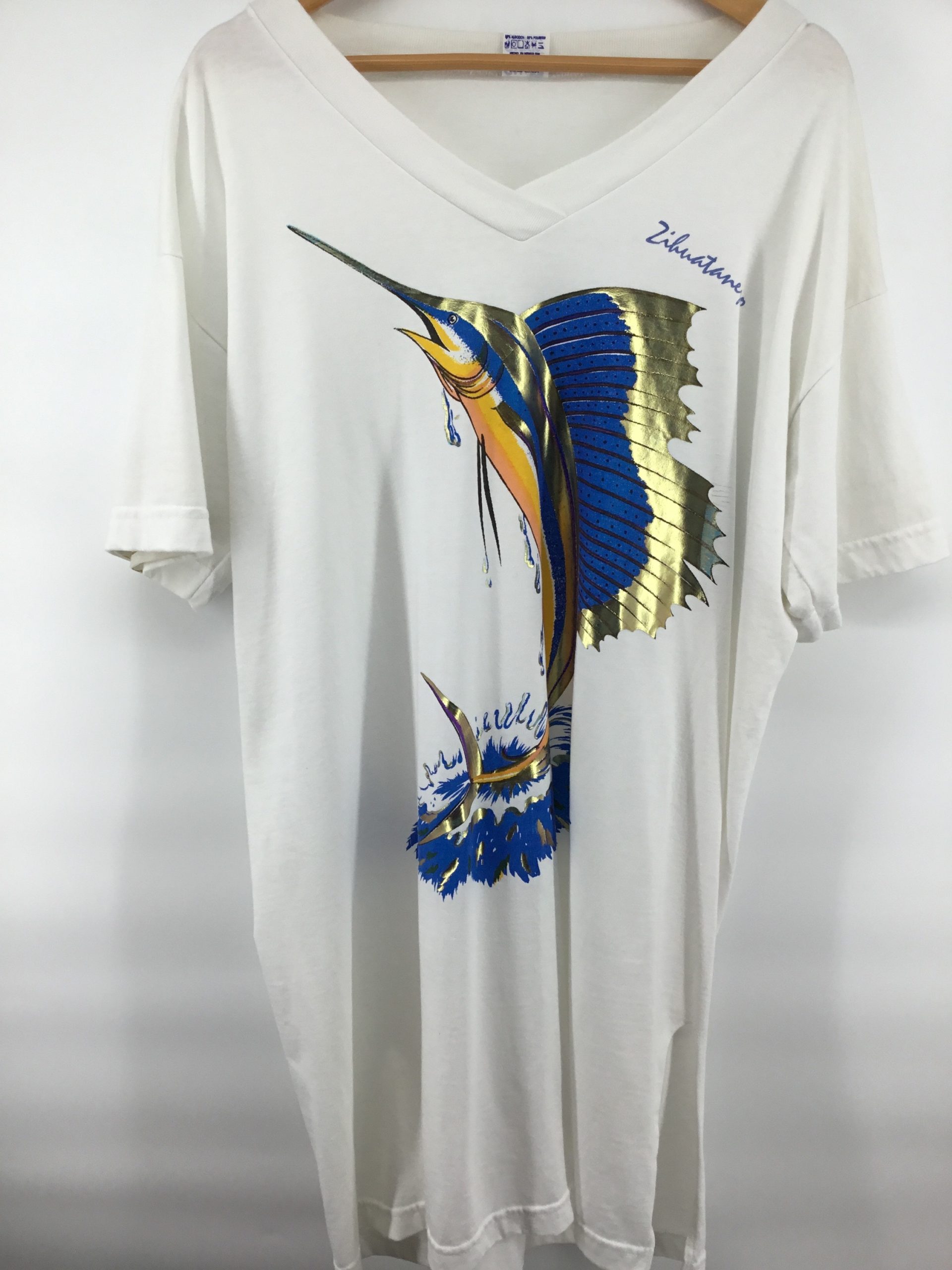 Pau Pacific Metallic Print Swordfish Extra Long Shirt