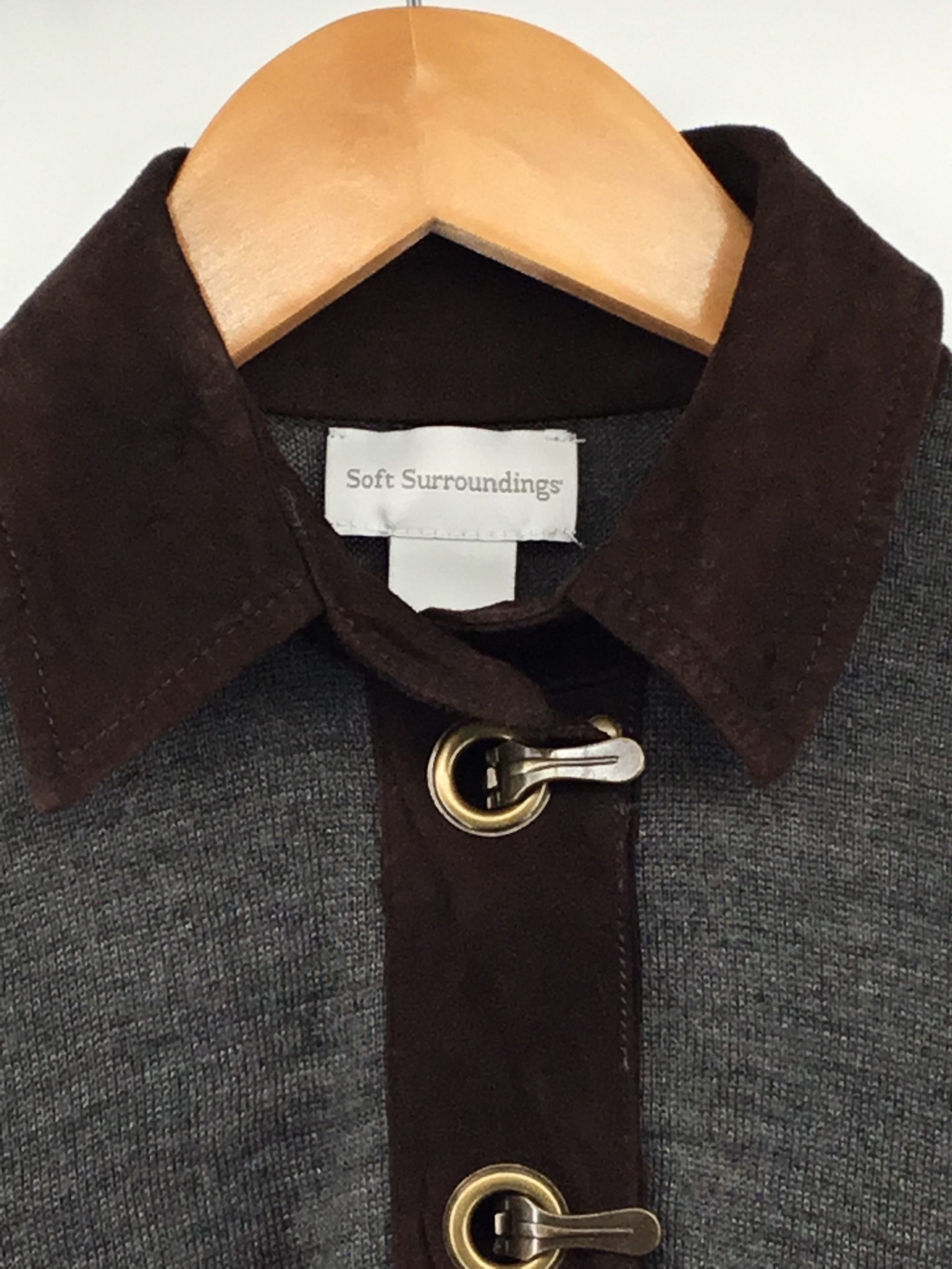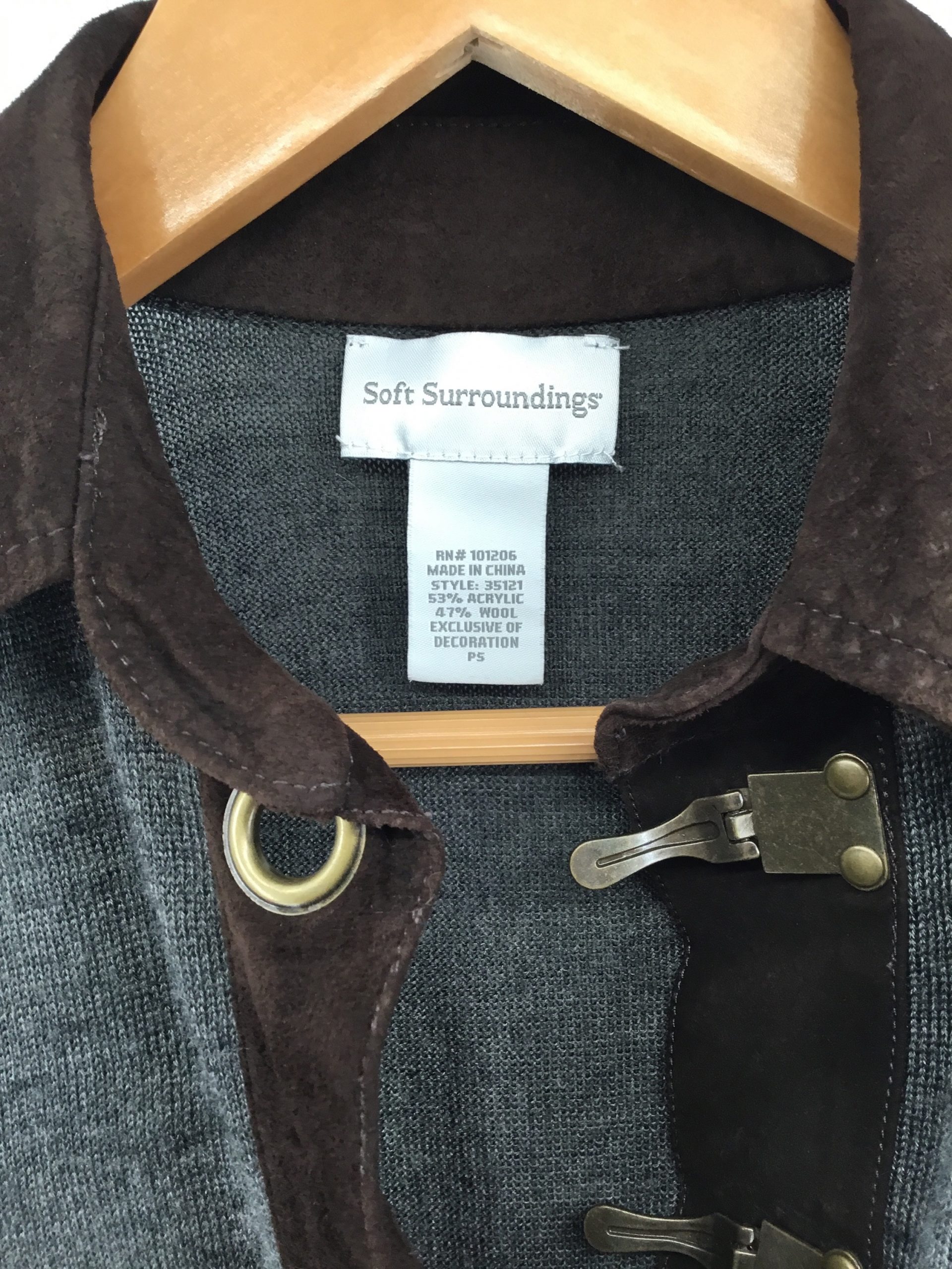 Soft Surroundings Gray Blouse with Leather Decorations PS